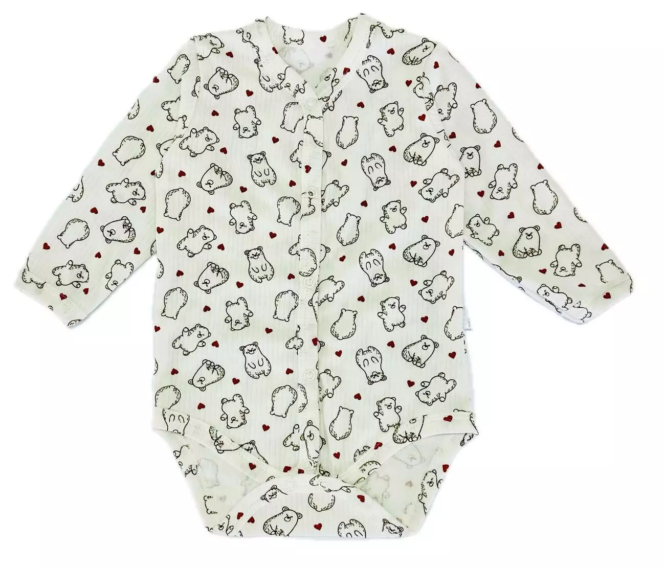 Боді ясельний з довгим рукавом. Застібка - кнопки. Полотно - інтерлок раппорт, бавовна 100%