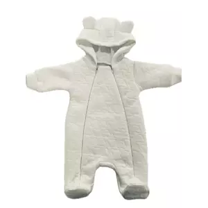 Комбінезон ясельний двошаровий з капюшоном. Застібки - дві потаємні блискавки. Полотно - двошаровий інтерлок, бавовна 100%, із тонким шаром синтепону. Сезон - рання осінь, пізня весна.