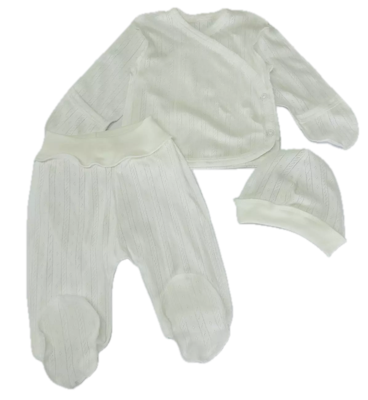 Комплект ясельний: льоля, повзунки, шапочка. Полотно - ластик ажурний, бавовна 100%