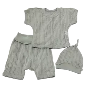Комплект ясельний: льоля зкоротким рукавом, штанці вкорочені, шапочка. Полотно- ажурний ластик, бавовна 100%
