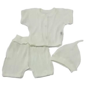 Комплект ясельний: льоля з коротким рукавом, штанці вкорочені, шапочка. Полотно - ажурний ластик, бавовна 100%