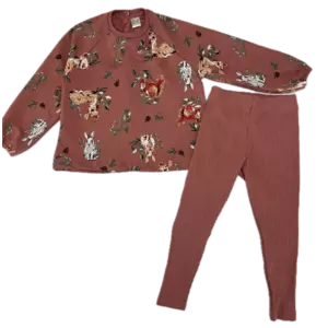 Піжама для дівчинки, бавовна 100%. Кофтинка - рукав на тоненькій гумці, застібка - кнопка на спині, полотно - двонитка з начісом. Лосини - рубчик з легким начісом.