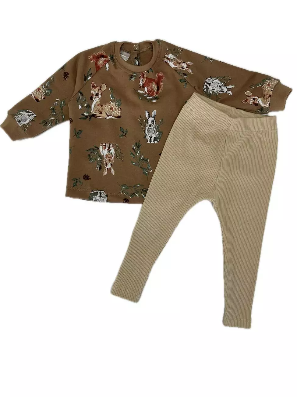 Комплект для дівчинки: кофтинка з манжетами на рукавах, застібка на кнопці на спині та лосини. Полотно кофтинки - двонитка з начосом, полотно лосин - рубчик з легким начосом. Бавовна 100%