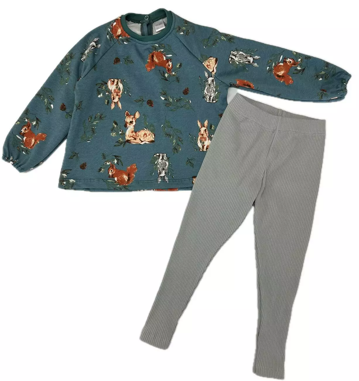Піжама для дівчинки, бавовна 100%. Кофтинка - рукав на тоненькій гумці, застібка - кнопка на спині, полотно - двонитка з начісом. Лосини - рубчик з легким начісом.